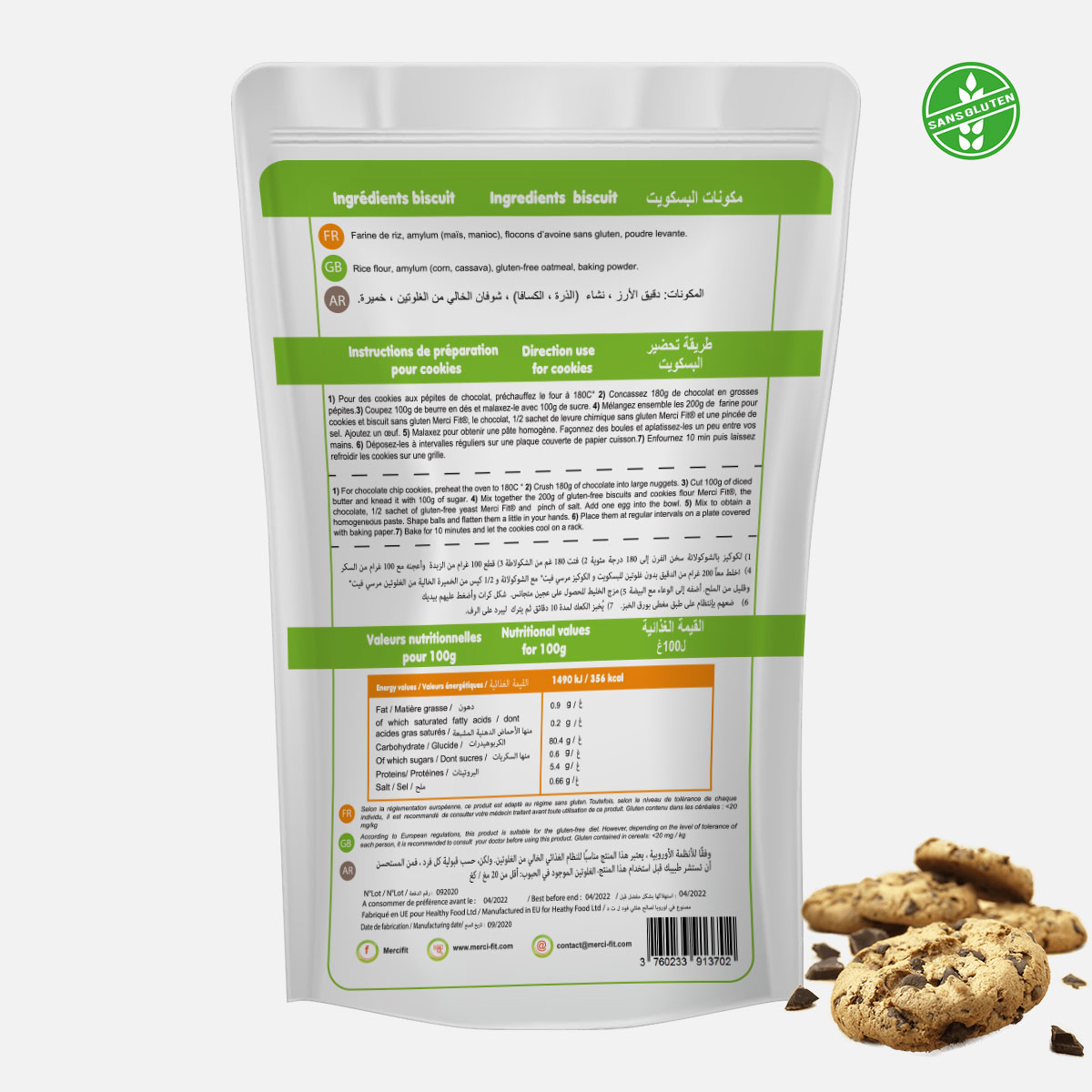 Notre préparation pour Cookies et Biscuits Merci Fit® est un nouveau mélange sans gluten pour la préparation de biscuits de toutes sortes : sablés, cookies,etc… .
